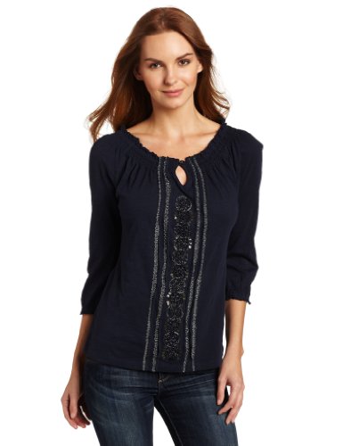 Lucky Brand Women's Melanie Top, American Navy, X-...